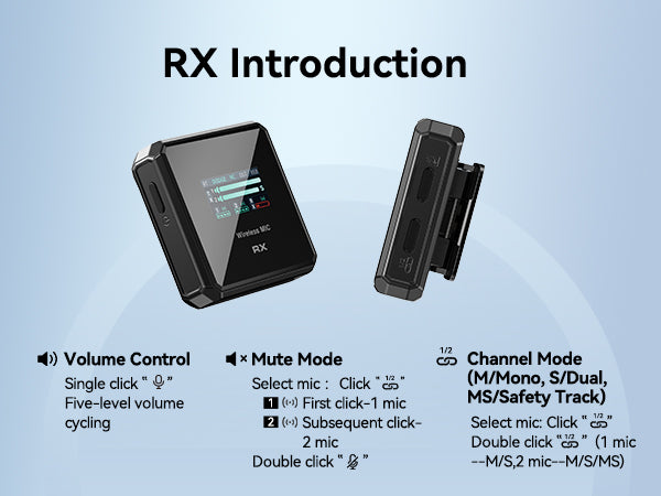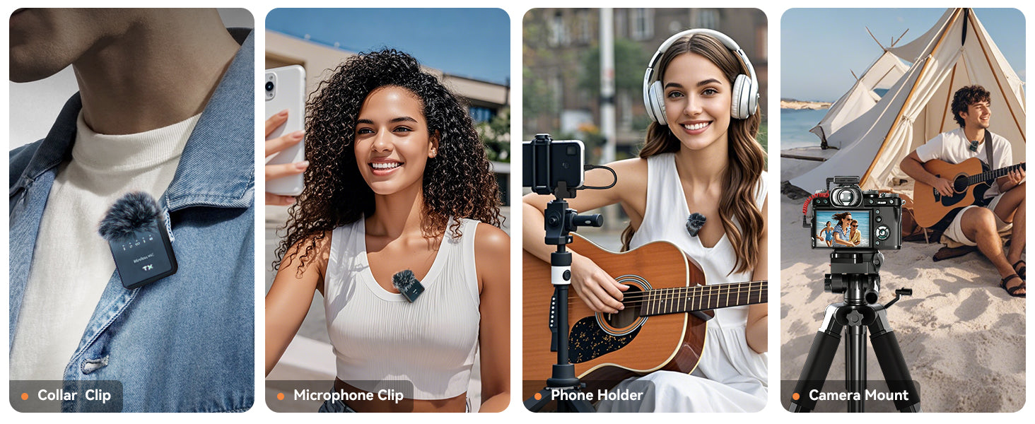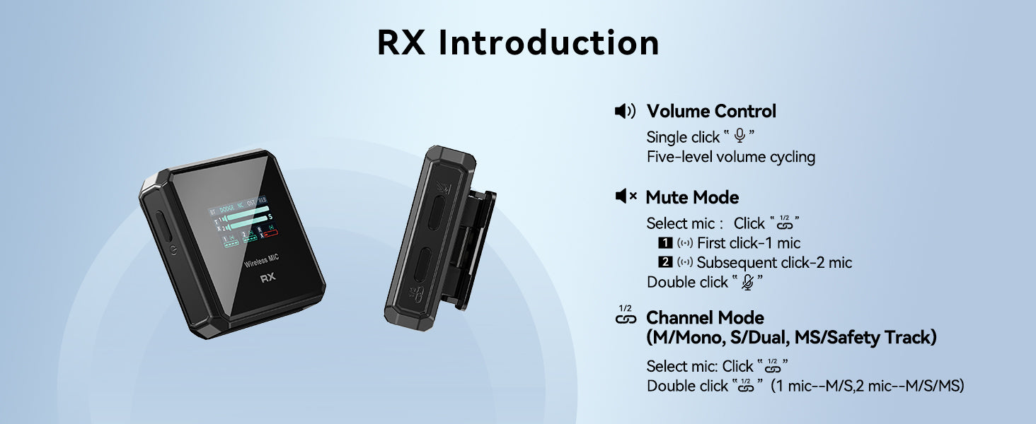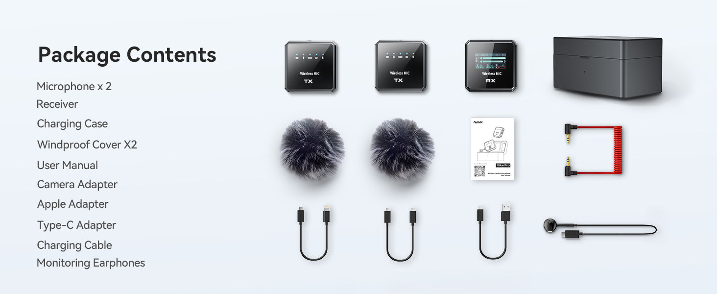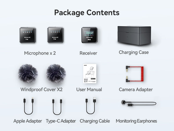 - All-in-one: Features 2 transmitters (TX) and 1 receiver (RX), a charging case, 3 adapter and other accessories.