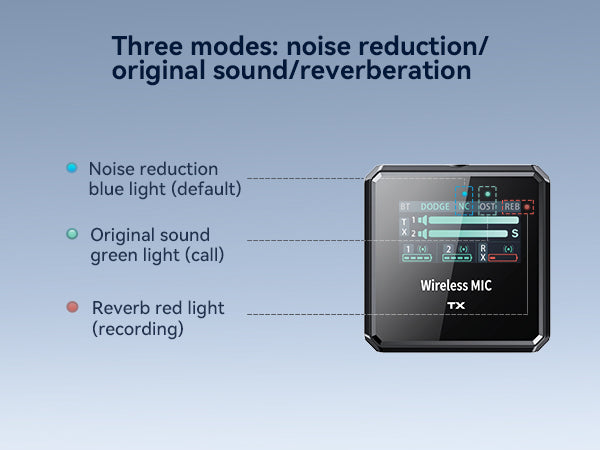 NANK lavalier mic has three modes, mono, dual-channel and safe track. Dual-channel makes the sound more three-dimensional, and the safe track mode has popping and distortion.