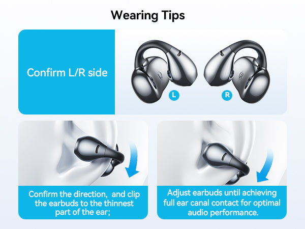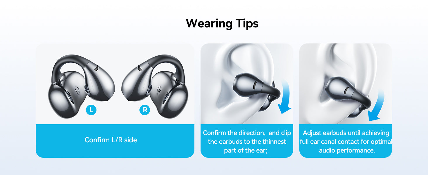 Primeiro, verifique se há etiquetas "L" (esquerda) e "R" (direita) nos fones de ouvido e, em seguida, abra o clipe com cuidado;