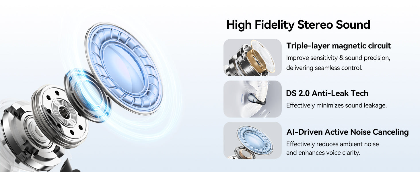 Seja para esportes, deslocamento ou uso no escritório, nossos fones de ouvido podem fornecer suporte confiável.